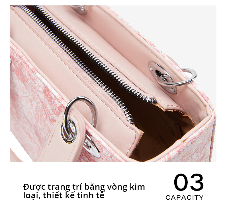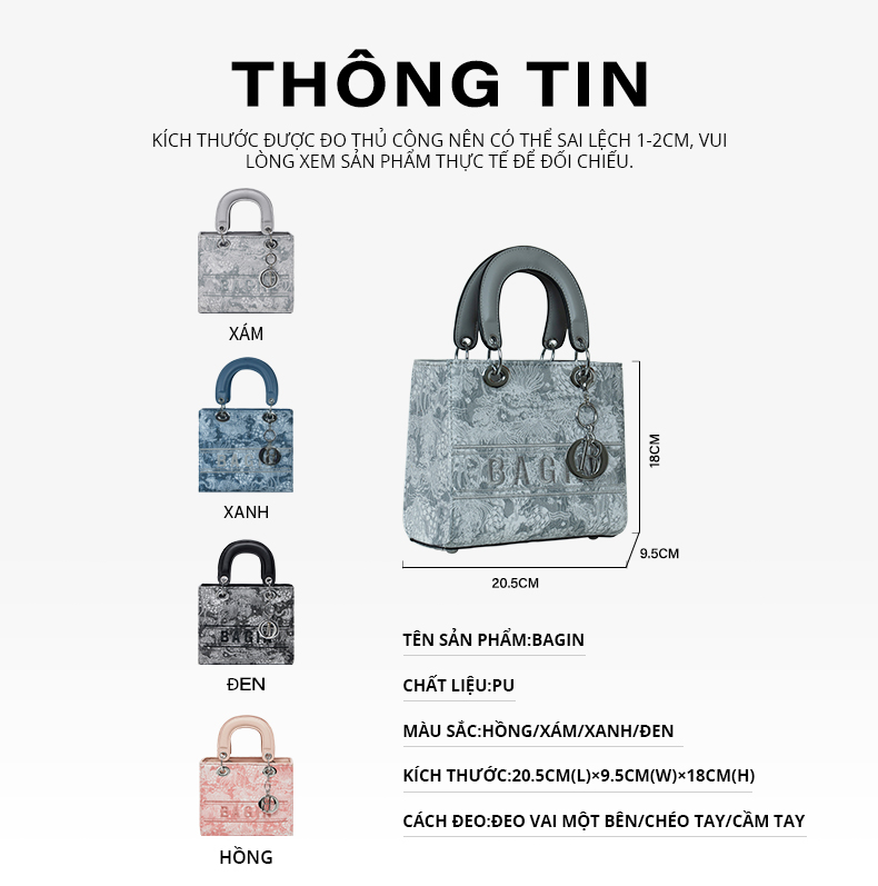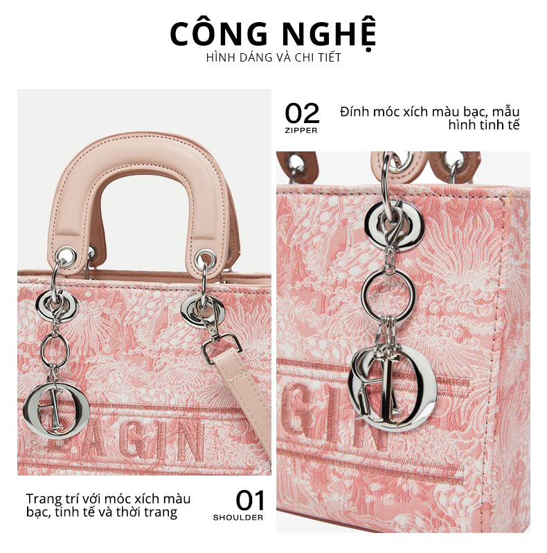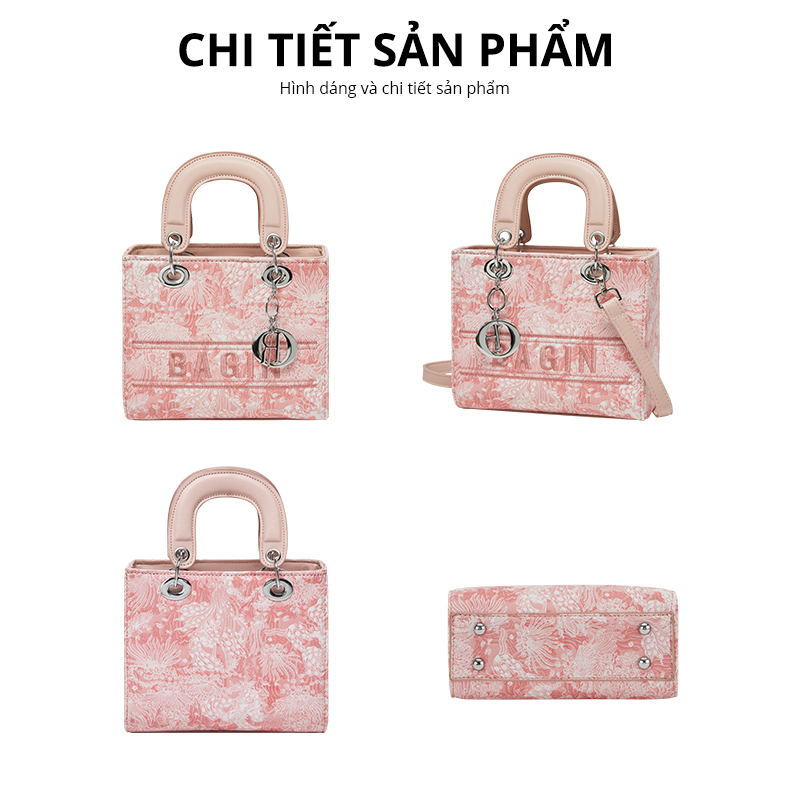 Túi Xách Nữ Bagin Dáng Vuông Size 20 Họa Tiết Thêu Nổi Tặng Kèm Charm Và Dây Đeo Túi Đi Tiệc Sang Trọng [gy-855]