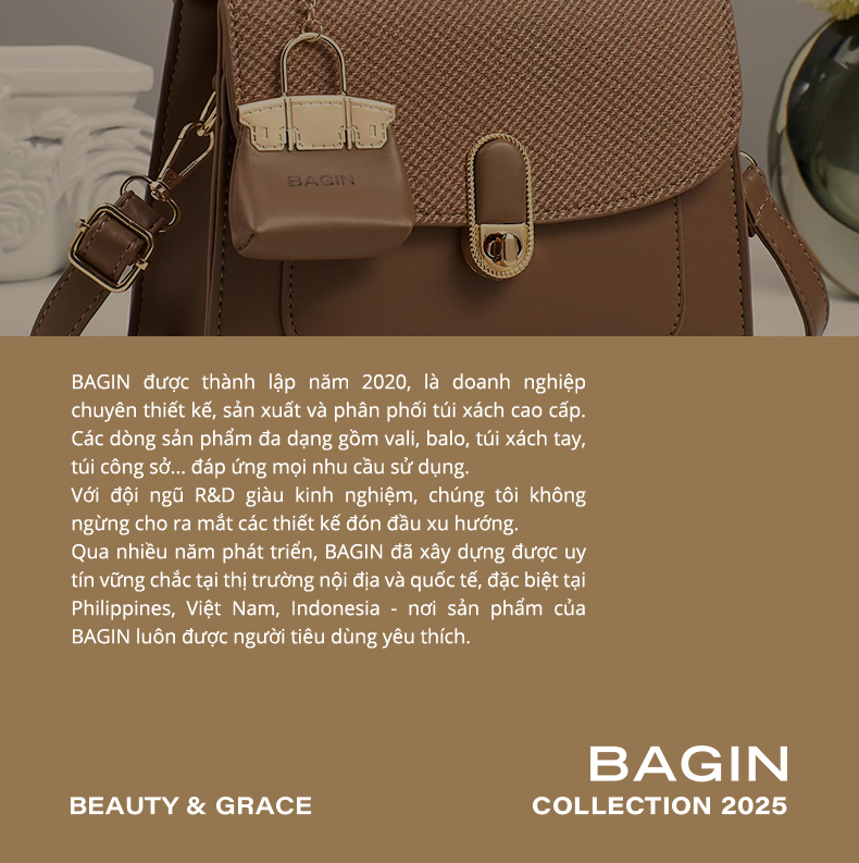 Túi Đeo Chéo Nữ Bagin Tặng Kèm Móc Khóa Xinh Xắn Thời Trang Tiểu Thư Thanh Lịch [gy-1180]