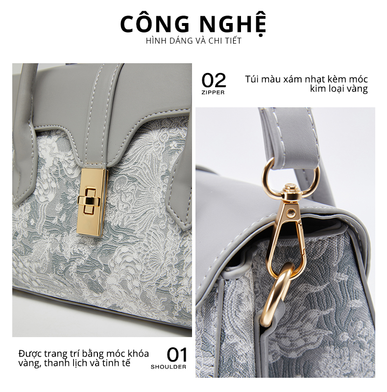 Túi Xách Nữ Bagin Size 25 Họa Tiết Thêu Tinh Tế Sang Trọng Kèm Dây Đeo Chéo [gy-860]